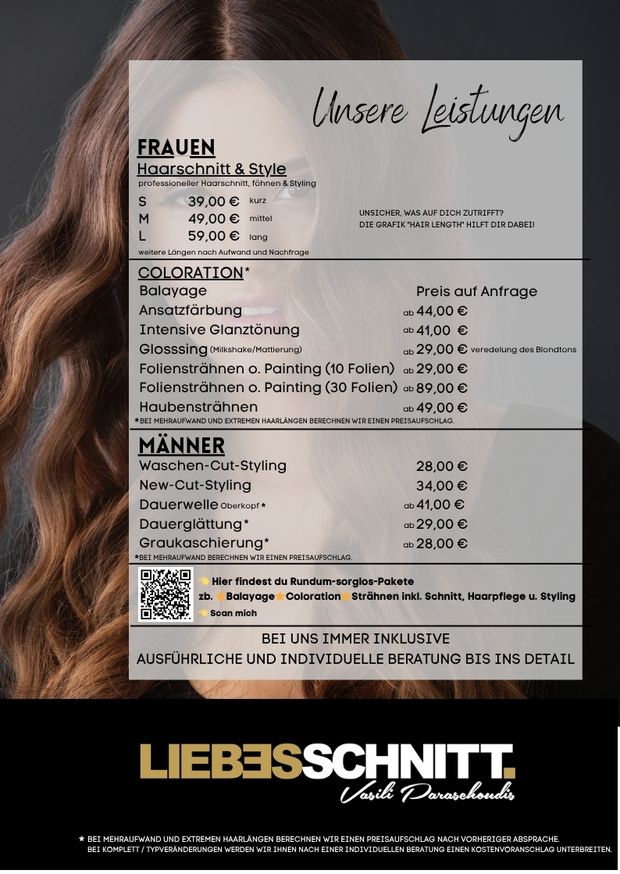 Im Friseursalon Liebesschnitt in Oberhausen verwöhnen wir Dich mit Leidenschaft und bieten Dir eine breite Auswahl an Friseur-Dienstleistungen.